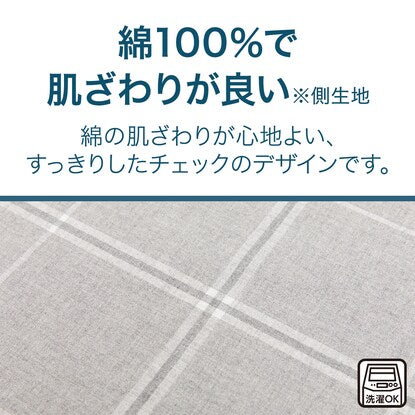 同じアイテム ほかの商品はこちら 綿100%で 肌ざわりが良い※側生地 綿の肌ざわりが心地よい、 すっきりしたチェックのデザインです。 ひもなしで らくらく付け替え簡単 テイジンが開発した 超極細繊維「ナノフロント®」の生地を使用。 スリット2か所つき 楽にふとんを直せる スリットから手を入れて、 カバーを外さずにふとんのズレを直せる。 ※画像・イラストはイメージです。 シングルサイズ【NITORI×TEIJIN】肌ざわりが良い綿100%生地を使用 ふとんがズレにくい「ナノフロント®」生地を裏返し面の上下に使用 ひもなしラクラクなのでカバーの付け替え簡単! 出し入れ簡単!全開ファスナー 取り付け・取りはずしが簡単 スリット付き■打ち込み本数(約):110本 表生地:110本 裏生地:110本 ※「打ち込み本数」とは、1インチ(2.54cm)あたりの 「たて糸」「よこ糸」の合計本数のことです。 数値が多いほど、細い糸を使っているので、生地が柔らかく、きめ細かい生地になります。 250本以上のものを高密度な生地といいます。■組成 側生地:綿100% 滑りにくい部分(内側):ポリエステル100%■洗濯機OK(ネット使用)こちらは掛けふとんカバーのみの販売です。