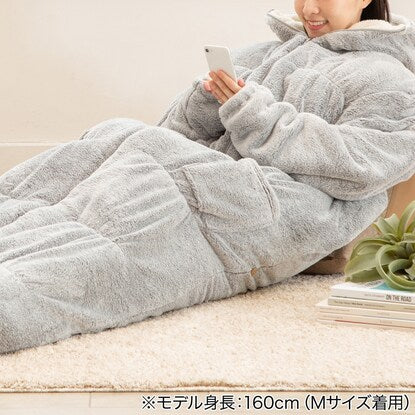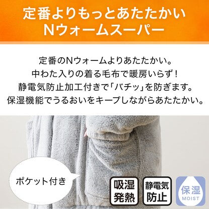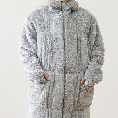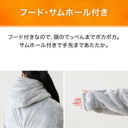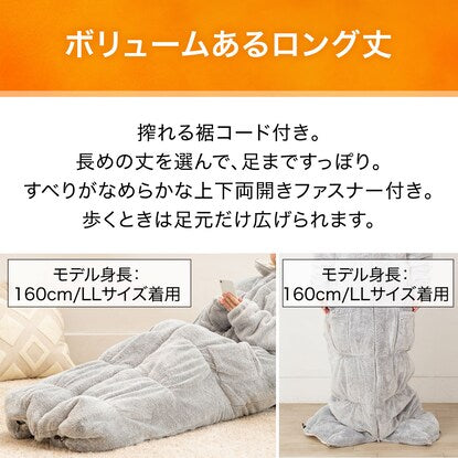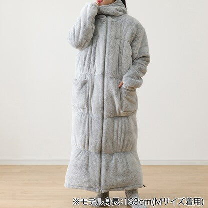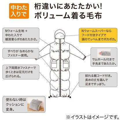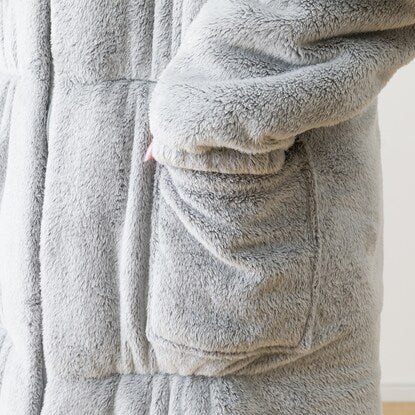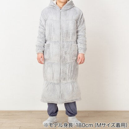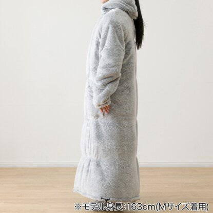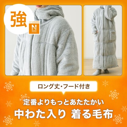 フード付き 中わた入り着る毛布 ロング丈(NウォームSP GY M)