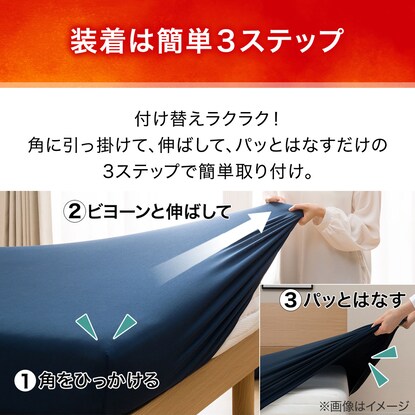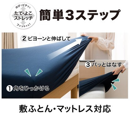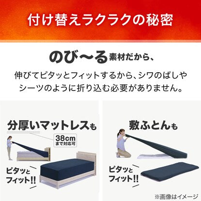 マットレスに被せやすく、まち部分が伸縮するのですっぽり包み込んでズレずにフィット。