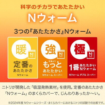 今年も「Nウォーム」の季節がやってきた!ニトリが開発した体から発散される水分を熱に変える「吸湿発熱素材」を使用したアイテム。定番のあたたかさ「Nウォーム」のまくらカバーで、肌に触れた部分からじんわりあったか~い。