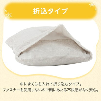 中にまくらを入れて折込むタイプ。まくらの形にフィットしやすく、ファスナーやボタンを使用しないので顔にあたる不快感がなく安心。