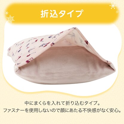 中にまくらを入れて折込むタイプ。まくらの形にフィットしやすく、ファスナーやボタンを使用しないので顔にあたる不快感がなく安心。