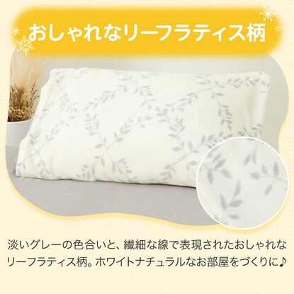 淡いグレーの色合いと、繊細な線で表現されたおしゃれなリーフラティス柄。ホワイトナチュラルなお部屋をづくりに♪