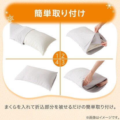 まくらを入れて折込部分を被せるだけの簡単取り付け。