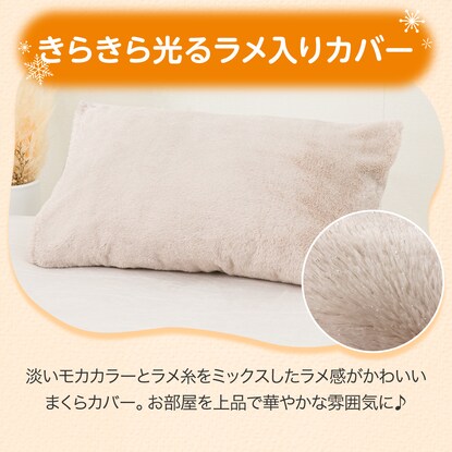 淡いモカカラーとラメ糸をミックスしたラメ感がかわいいまくらカバー。きらきら光るラメがお部屋を上品で華やかな雰囲気に♪
