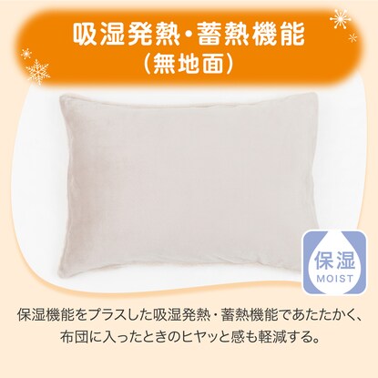 保湿機能をプラスした吸湿発熱・蓄熱機能であたたかく、布団に入ったときのヒヤッと感も軽減。かわいさと快適さを両立したおしゃれなまくらカバー。