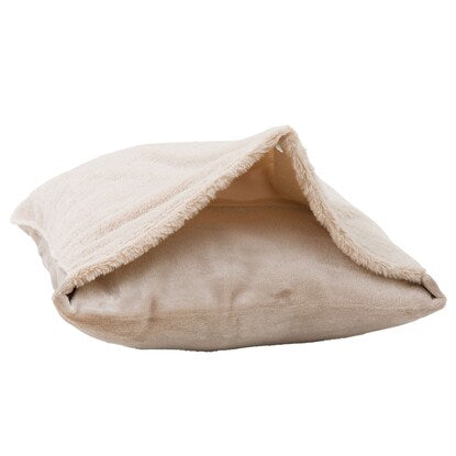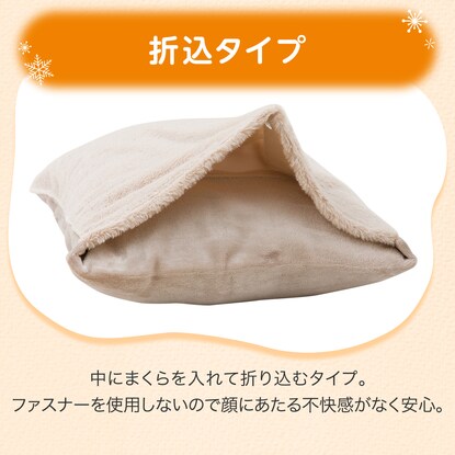 中にまくらを入れて折込むタイプ。まくらの形にフィットしやすく、ファスナーやボタンを使用しないので顔にあたる不快感がなく安心。