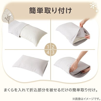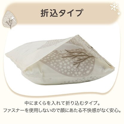 中にまくらを入れて折込むタイプ。まくらの形にフィットしやすく、ファスナーやボタンを使用しないので顔にあたる不快感がなく安心。