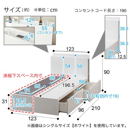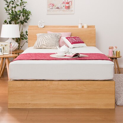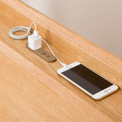 シックなフレームは2口コンセント付き。小物を置ける奥行きもあります。