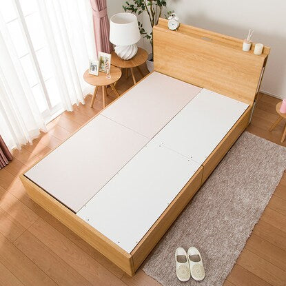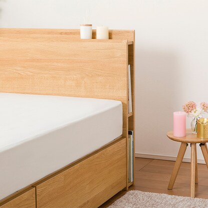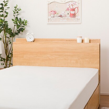 ヘッドボードは見た目すっきりなフラットタイプですが、上部に時計や眼鏡などを置けるスペースあるので、必需品にすぐに手が届きます。