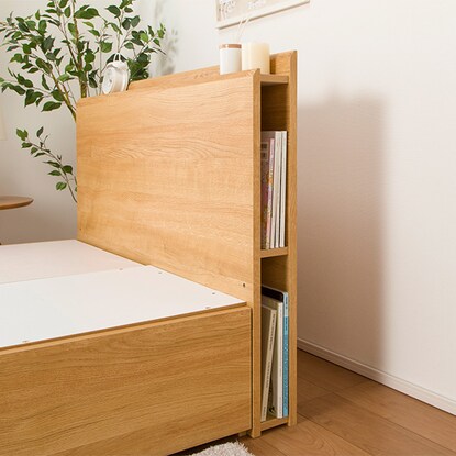 サイドは本や小物を収納できるオープンスペース付きで見た目はスッキリとしながらも充実の収納力です。