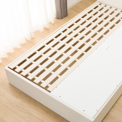 お部屋になじみやすいナチュラルな風合いのベッドフレームです。