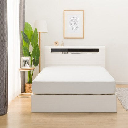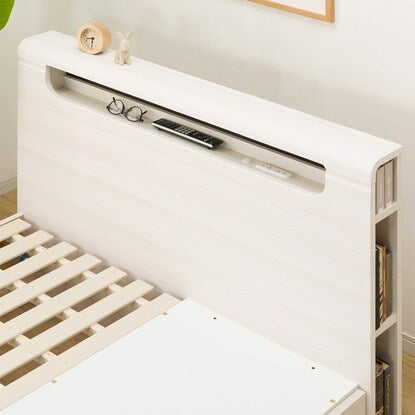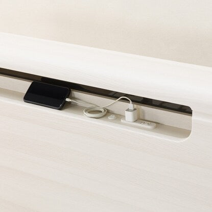 シンプルデザインのヘッドボードには便利な機能が充実。