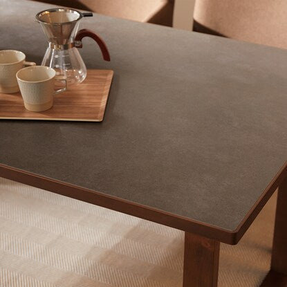 なめらかな質感の天然木テーブルにキズ・熱・汚れに強いセラミックトップを融合。お手入れしやすく、お部屋にもなじみやすいテーブルです。