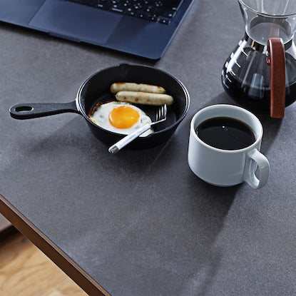 ※焼き物の質感、釉薬が生み出す風合い、天然石の色柄を表現する手法を用いているため、1枚ごとに天板の表情(風合い・色・柄など)は異なります。