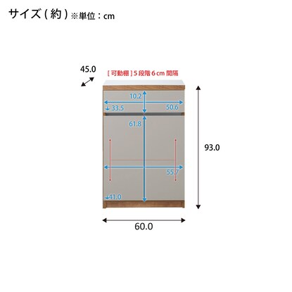 キッチン収納カウンター(幅60cm 開き扉 GY)