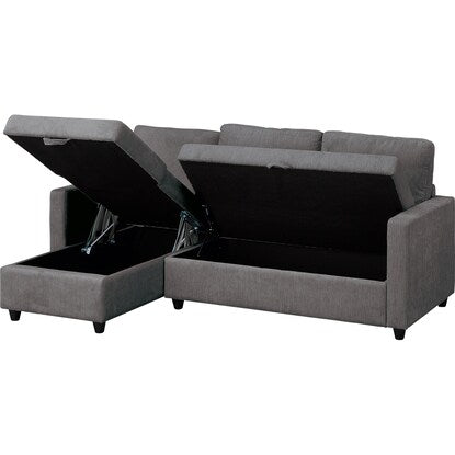 布張り 収納付きカウチソファ(ノアーク2 撥水加工タイプ DGY)