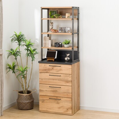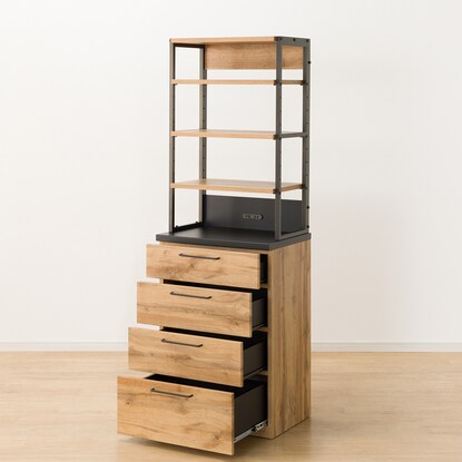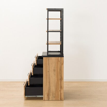 下段は4段の引き出しで中身を隠してすっきり収納できます