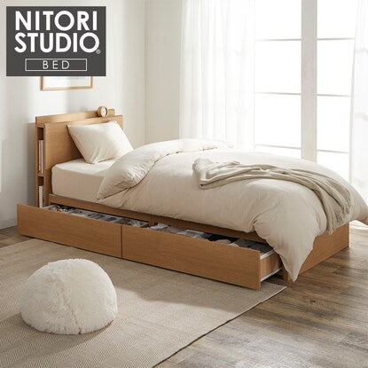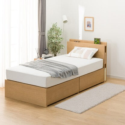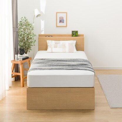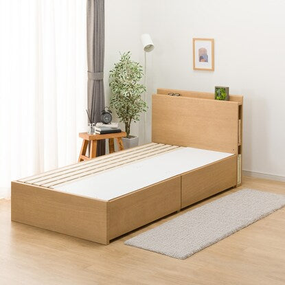シングル 棚・サイド収納付きベッドフレーム(NS-003 深型/すのこ LBR)