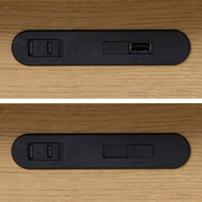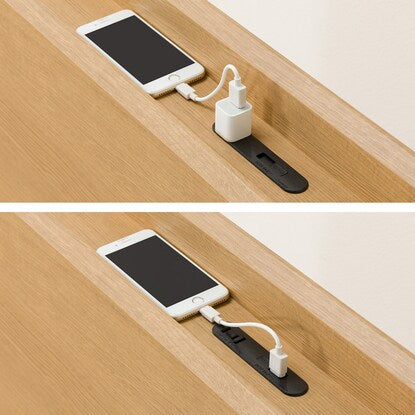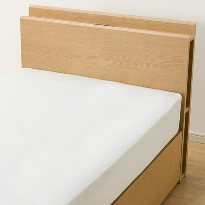 ヘッドボードは見た目すっきりなフラットタイプですが、上部に時計や眼鏡などを置けるスペースあるので、必需品にすぐに手が届きます。さらに充電に便利なコンセントとUSB付き。