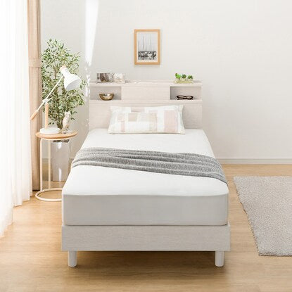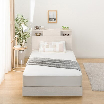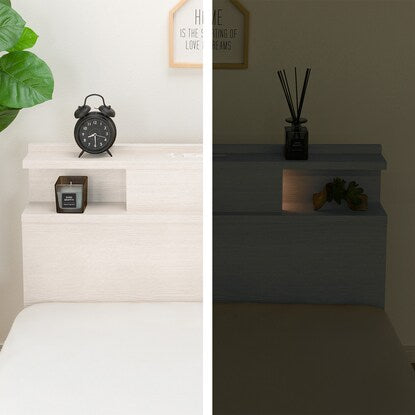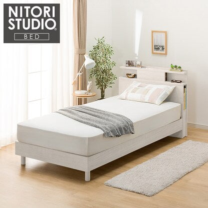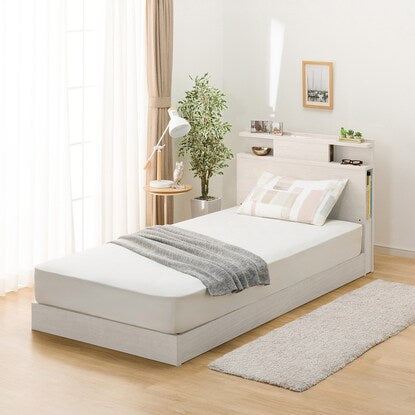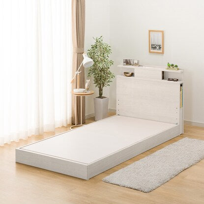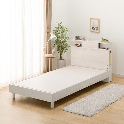 シングル 棚・照明・サイド収納付きベッドフレーム(NS-004 LEG/LOW 床板 WW)