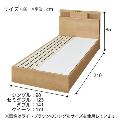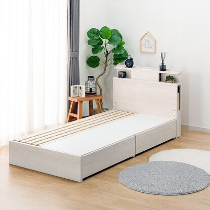 シングル 棚・照明・サイド収納付きベッドフレーム(NS-004 浅型/すのこ WW)