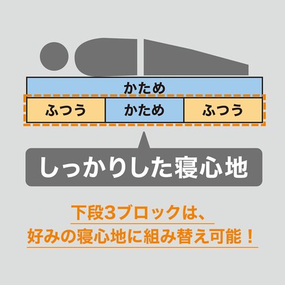 腰部分にかためのブロックを設置し、腰をまっすぐに支えて自然な寝姿勢をサポートします。