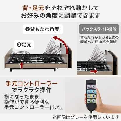 ベッドの高さ・背部・足元を無段階調整できる3モーター仕様。