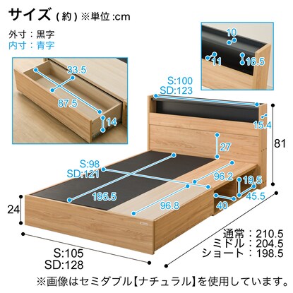 ※床面長さショート・ミドル時はシェルフが一部ヘッドボードに隠れます。