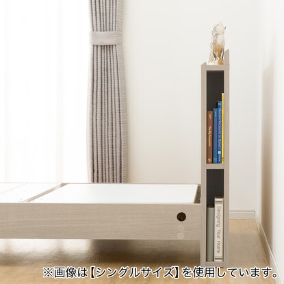 脚を外すと低床フレームになりますので、お部屋が広く感じられ、マットレスの厚さに応じて高さを変えることができます。床下がお掃除しやすい、すっきりとしたデザイン。マットレスのずり落ちを防ぐガード付きです。