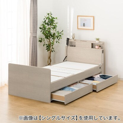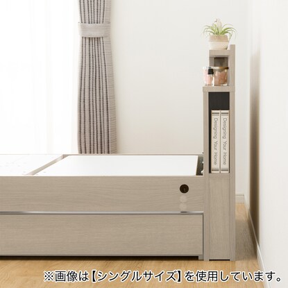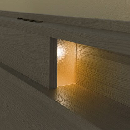 上部に時計や眼鏡などを置けるスペースのヘッドボードあるので、必需品にすぐに手が届きます。さらに充電に便利なコンセントとUSB付き。枕元をやさしく照らしてくれる照明つきなので、暗いお部屋でも安心です。