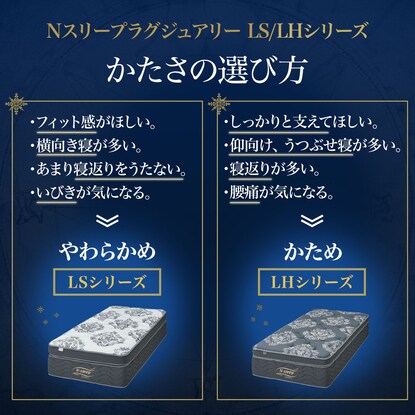 こちらのNスリープラグジュアリーマットレス Lシリーズはツインベッドとしても使える仕様になりました。LS3、LH3のマットの高さを同じにして横並びでも違和感なく使用可能です。