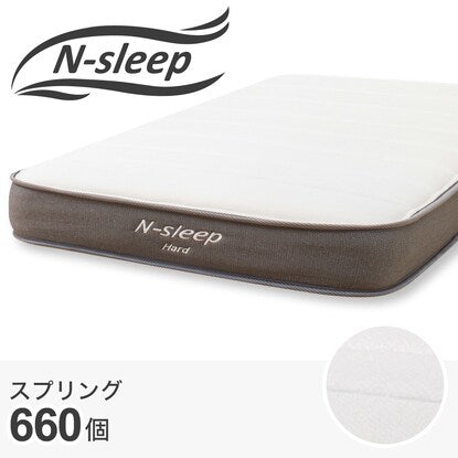 Nスリープシリーズのハードタイプ。太めのポケットコイルで「かため」な寝心地。処分時に分解しやすい「かんたん分別」マットレス。コイルが点で体を支えることで、体のラインに合わせてフィット。ロール状に梱包されているため、玄関先で受け取りラクラク。開封後すぐにご使用いただけます。※本来の大きさを取り戻すのに2~3日かかる場合があります。一度開梱すると再圧縮はできません。 こちらはダブルサイズです。※厚さ約18.5㎝(一番膨らんでいる箇所を計測しています)■表面生地 伸縮性の高いニット生地 ポリエステル100% 【詰め物】 表面:綿(10mm)、ソフトウレタン(10mm)、不織布、ソフトウレタン(20mm)、不織布 裏面:不織布、ソフトウレタン(15mm)、不織布、ソフトウレタン(15mm)、綿(10mm)【スプリング数】 660個【スプリング線径】 線径1.8mm並行配列5巻き コイル高100mm※イメージ画像の場合、使用している小物等は演出品です。