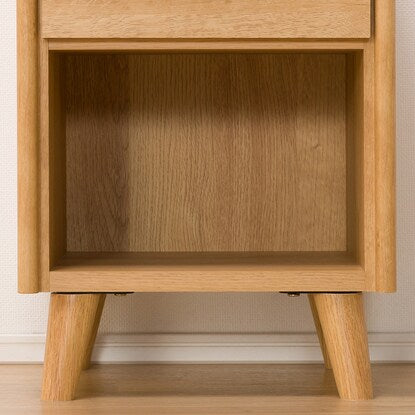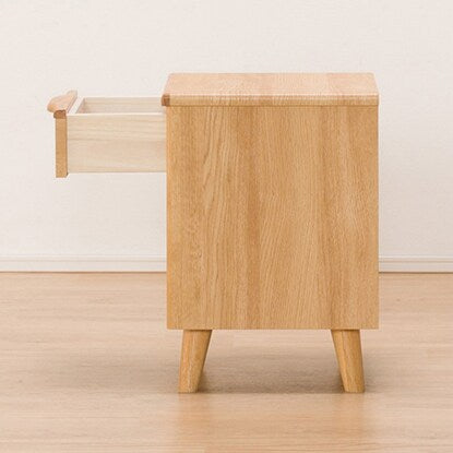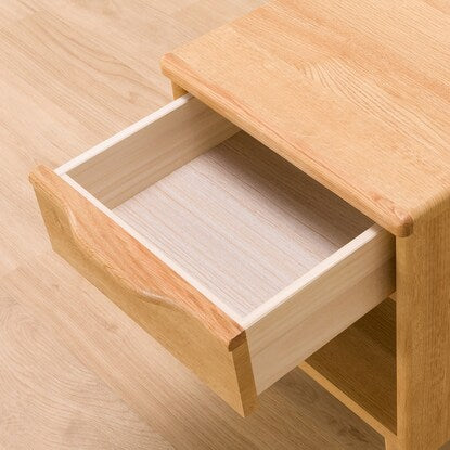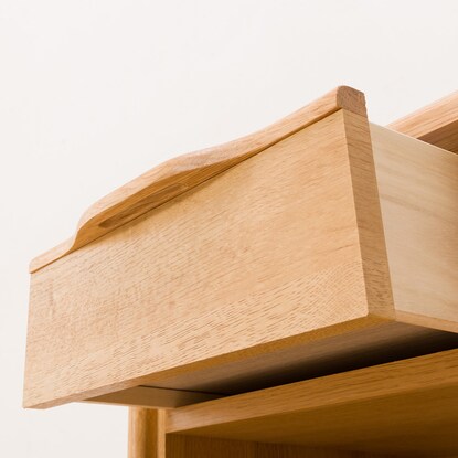 引出しやすい形状の取っ手にはオーク無垢材(天然木)を使用しています。