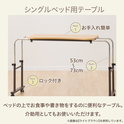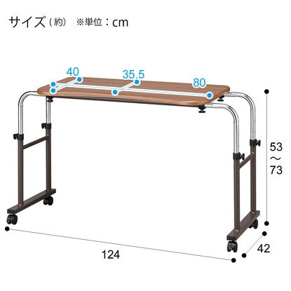 Sサイズベッド用テーブル、高さ(53cm~73cm)まで5段階調整。天板は800㎜×400㎜と十分なスペース確保、