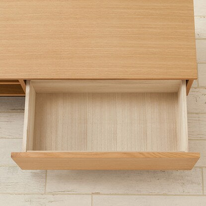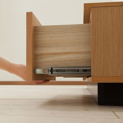 引出し2杯付きで豊富な収納力。お部屋に馴染みやすいベーシックカラー。 天板、引出し前面は自然な風合いの天然木突き板を使用。お部屋に合わせやすい、 木目の美しいデザインです。 ※ミドルブラウン:ウォールナット突板 ライトブラウン:オーク突板 ホワイト :ハイグロスPU塗装 ※ホワイトは天然木突板ではありません。 豊富な収納力のある引出し2杯は、スライドレールを使用しているため開閉がスムーズです。 背板に配線穴が付いているので、ごちゃつくコード類も背面の配線穴ですっきり束ねられます。 ブラックの脚元とのツートーンカラーでオシャレな仕上がりです。【詳細サイズ(約)】 ■オープンスペース内寸:幅49×奥行31.5×高さ18cm 棚板1枚(取外し可能)棚板サイズ:幅48.5×奥行28.5×厚さ1.8cm 棚板設置時:上部高さ7cm・下部高さ9cm ■引出内寸(左右共通):幅56×奥行26.5×高さ15.5cm
