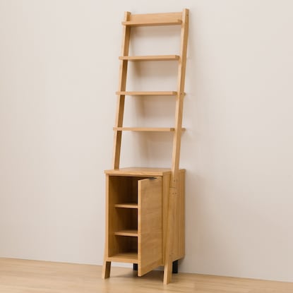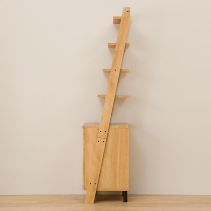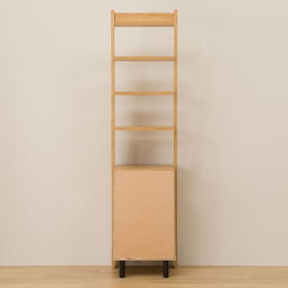 どんなレイアウトにもサッとなじむシンプルでスッキリとしたデザインのサイドボード。 飾り棚が一体となっているのでお気に入りのディスプレイも楽しめます。 インテリア性が高いので人の集まるリビングにも映えます。 脚付きなのでお掃除もしやすく、床が見える分お部屋の奥行きを広く見せることができます。本や雑貨を並べられるディスプレイに最適な飾り棚付き。扉内は可動式棚板となっているため、物の大きさに合わせて収納することができます。脚付きなのでお掃除もしやすく、床が見える分お部屋の奥行きを広く見せることができます。 下のスペース高さは約11cmとなります。こちらは45cm幅タイプです。※イメージ画像の場合、使用している小物等は演出品です。【詳細サイズ(約)】オープン棚内寸 1段目:幅40×奥行12cm 2段目:幅40×奥行19.5×高さ21.5cm 3段目:幅40×奥行24×高さ21.5cm 4段目:幅40×奥行28.5×高さ21.5cm 5段目:幅40×奥行41.5×高さ25cm扉内寸:幅36×奥行36×高さ52cm 棚板:2枚 棚板サイズ:幅36×奥行29×厚さ1.5cm 可動ピッチ:3cm/3段階