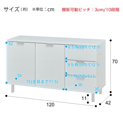 扉内は可動式棚板となっているため、物の大きさに合わせて収納することができます。