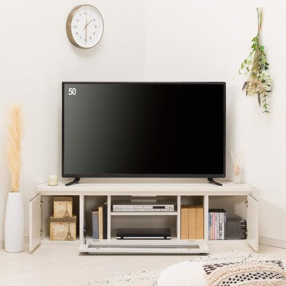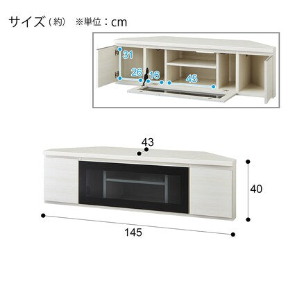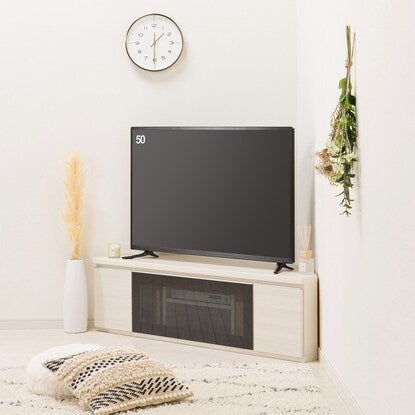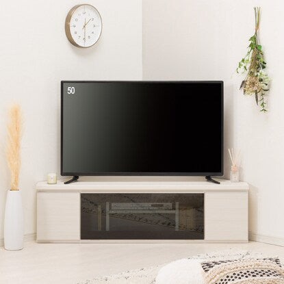 テレビを斜めに設置できるコーナータイプなのでコーナーソファと合わせるとどの位置からでも見やすく、デッドスペースも解消できます。