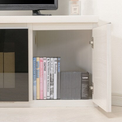 AV機器収納部分は出し入れしやすいフラップ扉です。
