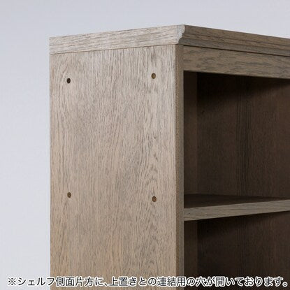 シェルフは単品での使用も可。但し側板に、上置きとの連結用の穴(直径約5mm)が4箇所ございます。