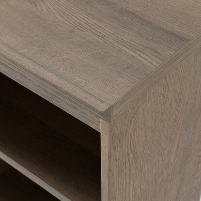 表面には丈夫で木目のきれいなオーク材の突板を使用(棚板と内面はプリント強化紙)。