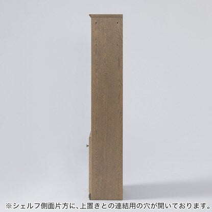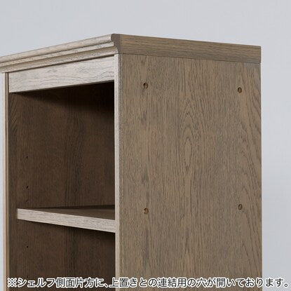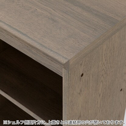シェルフは単品での使用も可。但し側板に、上置きとの連結用の穴(直径約5mm)が4箇所ございます。
