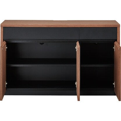 シックなデザインのローボード【ブロリック】シリーズのサイドボードです。 前板は重厚感のあるセラミック板。 天板はキズに強いエナメルUV塗装を施しています。 同シリーズのTVボード、リビングデスクと同一の強化シートなので、 並べて置いても色がぴったり合い、トータルコーディネートを楽しめます。こちらは幅120cmタイプです。※イメージ画像の場合、使用している小物等は演出品です。