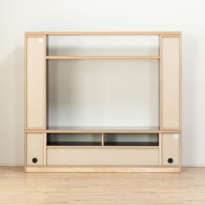 オープンスペースには高さが3段階に調節できる中天板を付け、雑貨や写真立て、本やDVDのコレクションなどのディスプレイ用として使えます。