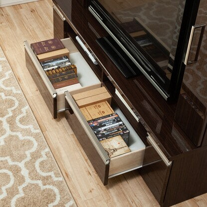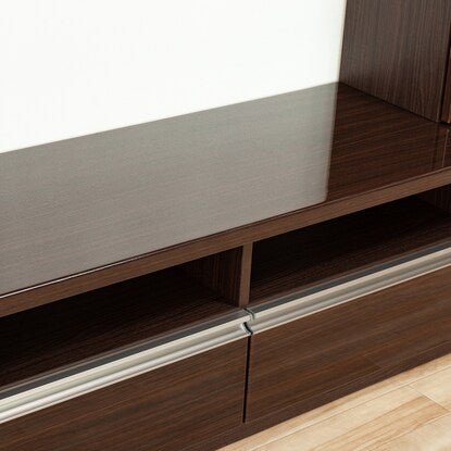 下部にはAV機器を2台入れられるオープンスペースと、スムーズに開閉ができる2杯の引出し。