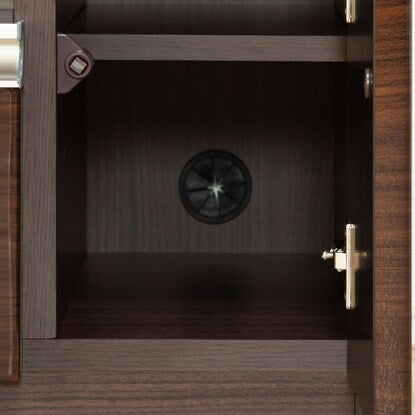 下段扉内はコンパクトな縦型ゲーム機を収容可能。背板に配線穴が付いているので、表面からはごちゃつかずにコードが通せます。