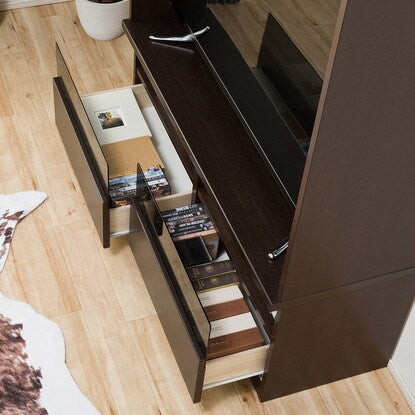扉付きの棚にはテレビ周りのCDやDVD、本や雑貨などを沢山しまうことができます。