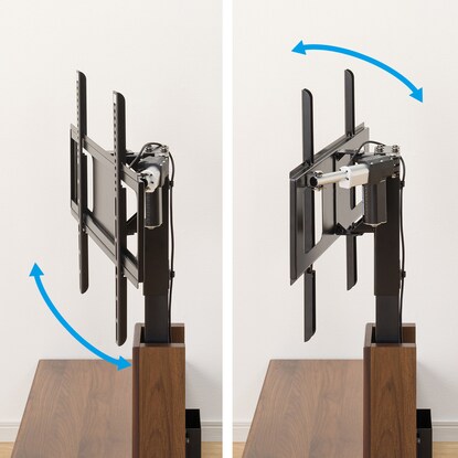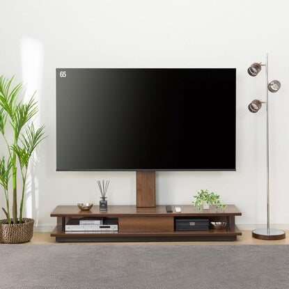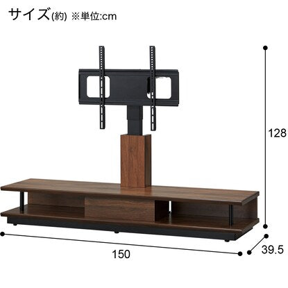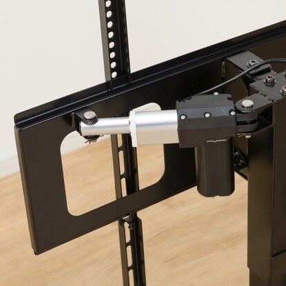 ※実際のサイズ・色・構造 等を保証するものではありません ARについての詳細はこちら座っても立っても見やすい高さに。 リモコンでラクラク操作できる電動昇降TVスタンドです。 2モーターの電動昇降+首振りTVスタンドで、高さだけではなく見やすい角度にスイングできます。 ※昇降により挟みこまれる危険があるため、ローボードの天板上には物を置かないでください。■AV機器収納内寸(約):幅49×奥行39×高さ15cm ■高さ:約88~128cm ■スイング角度:約210度 ■昇降の可動域:40㎝ ■適応TVサイズ:43~75V型(本体重量40kg以下) ※TVの詳しい対応サイズは各メーカーの製品情報をご確認ください。【取り付け可能なテレビ】 VESA規格で背面に壁掛け用のネジ穴が4つあり、その間隔が横200mm〜600mm以内、縦200mm〜400mm以内であること。 ※VESA規格とは、国際的に設けられたテレビの背面にある壁掛け用のネジ穴の数や間隔の規格のこと。「横300mm×縦200mm」などのように表記されている。 ※背面が平らであること。湾曲していたり凹凸がある場合は取り付け不可。 ※テレビがVESA規格であることを確認した上で、使うネジが不明な場合は、テレビスタンドに付属のネジを、大きい径かつ短いものから順番に試してください。長すぎるネジを使うと液晶パネルまで損傷させてしまう可能性がある為、ご注意ください。 ※付属のネジで取り付けできない場合は、お客様にて適合するネジを別途ご用意ください。