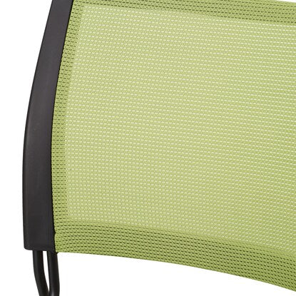 背もたれはメッシュ生地で通気性がよく、つかみやすい大型ハンドルが付いているので移動しやすく、椅子を引いたり持ち運びの際に便利です。